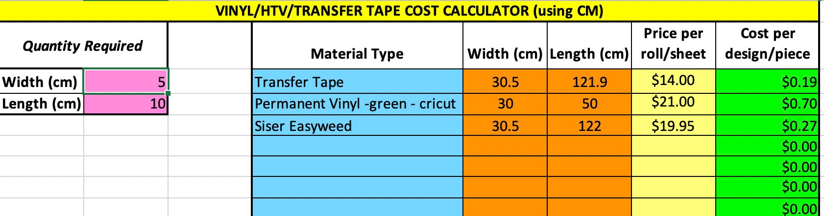 Step 1 cost of supplies 12 per hour worked 853 12 2053 make it. Vinyl Cost Calculator Ive recreated my Vinyl Cost Calculator on Instacalc along with some. Calculate how much heat.